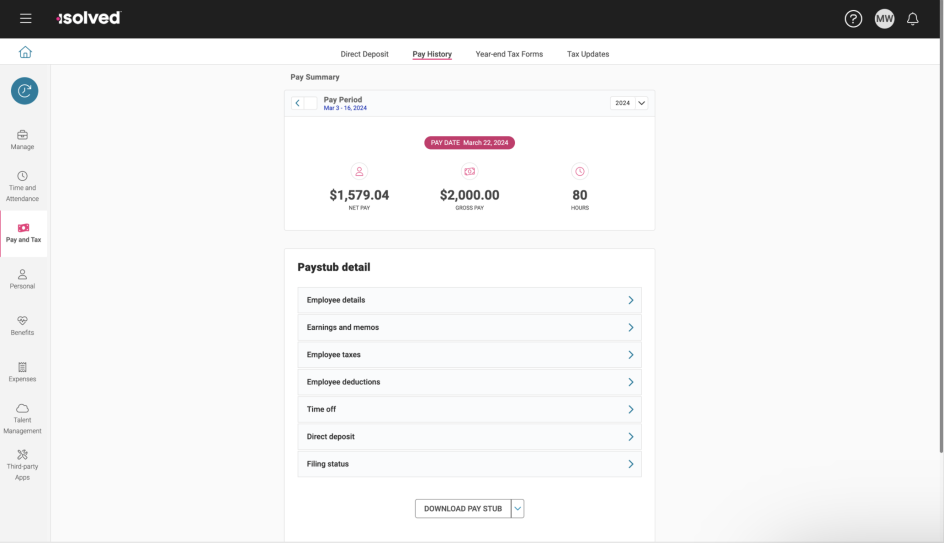 Create a positive experience through employee self-service access to personal data, pay stubs, W-2 forms, paid time off balances and diverse payment options, including direct deposit, pay card and on-demand pay.