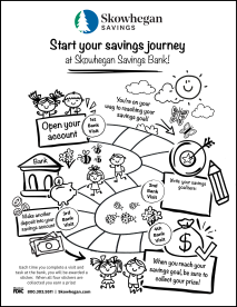 Our savings tracker sheet can help your child track their first savings goal. Each time they complete a visit and task at the bank, they will be awarded a sticker. When all four stickers are collected, the participant will earn a prize.